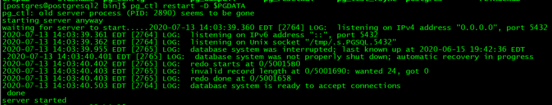 pg_ctl promote -D $PGDATA 结果是: waiting for server to promote........ done server promoted |
