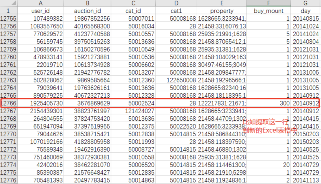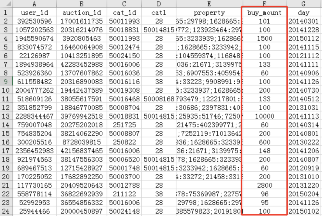 数据源:阿里云天池的电商婴儿数据(可自行搜索并下载,如果要完成进阶难度可直接将该数据Excel拷贝999次即可,当然这个拷贝可以交给代码来实现)
