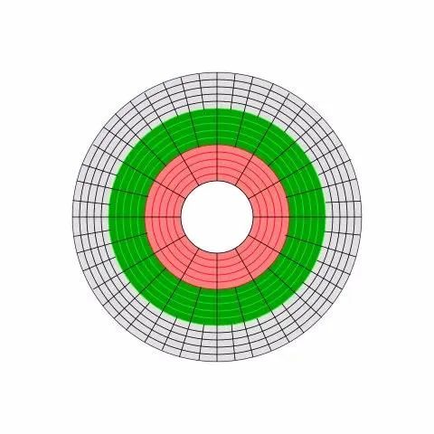 由于单一盘片容量有限,一般硬盘都有两张以上的盘片,每个盘片有两面,都可记录信息,所以一张盘片对应着两个磁头。 盘片被分为许多扇形的区域,每个区域叫一个扇区。 盘片表面上以盘片中心为圆心,不同半径的同心圆称为磁道,不同盘片相同半径的磁道所组成的圆柱称为柱面。 磁道与柱面都是表示不同半径的圆,在许多场合,磁道和柱面可以互换使用。
