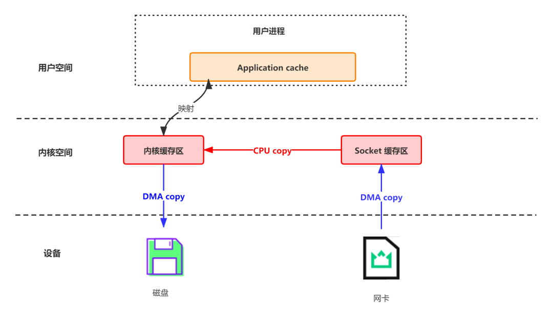 从而实现内核缓冲区与应用程序内存的共享,省去了将数据从内核读缓冲区(read buffer)拷贝到用户缓冲区(user buffer)的过程。