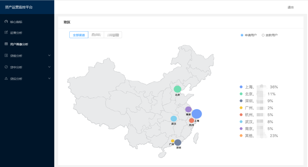 通过自研或接入内置用户画像分析功能的资产运营监控平台,建立包含性别、年龄、地域、学历、资讯、泛娱乐、电商、金融、生活等在内的全方位用户画像,并持续进行标签补全,强化用户分层与价值挖掘,是区域性银行开展和监测跨区域业务行之有效的办法。