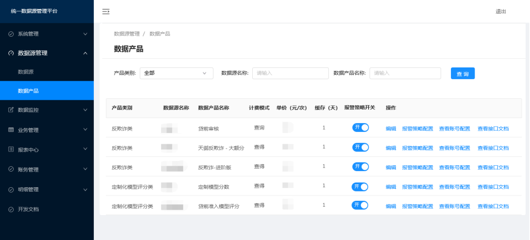 3. 数据质量全监控,通过内嵌数据监控模块,对数据质量如接口稳定性、响应性能等运行指标进行实时监控和报警,支持银行全可视化配置报警策略和接受人员,并对数据源异常情况下的同类数据源灾备切换。
