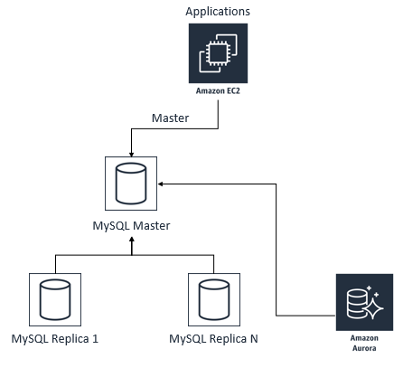 如果客户是在 Amazon EC2 或者本地数据中心自己部署的 MySQL 数据库,希望迁移到 Amazon Aurora 数据库,同时没有足够的停机时间来通过备份恢复的方式完成整个迁移。这种场景相对比较复杂,通常可以使用两种方式来进行最小时间停机的迁移。