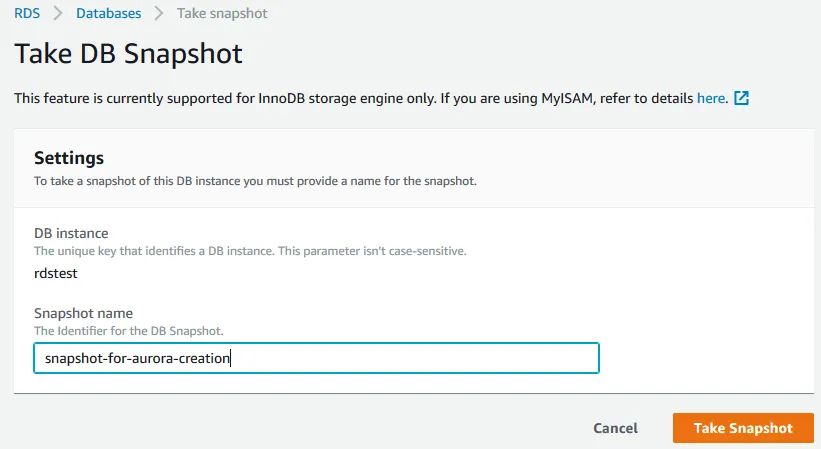 如果客户正在使用 Amazon MySQL RDS,并且没有足够的停机时间来通过 snapshot 的方式进行迁移的话,那么可以通过为 MySQL RDS 创建 Aurora 读副本的方式进行迁移。具体操作过程如下: