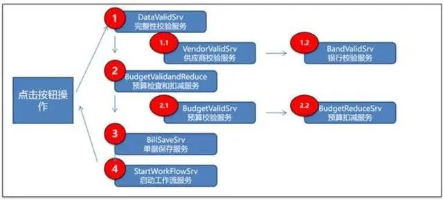 在这里,我们举一个业务报账单单据提交功能来进行说明和验证。业务人员在报账平台填写报账申请单,填写完成后进行提交,具体涉及到如下操作步骤。