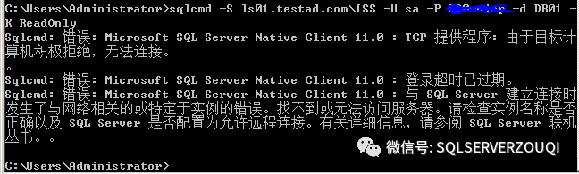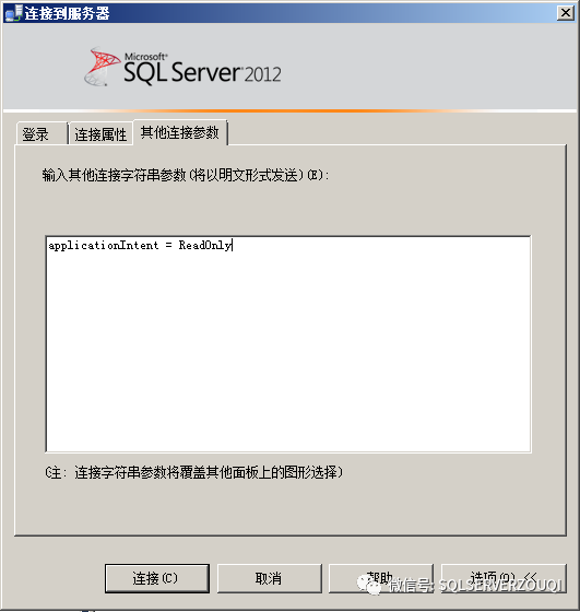 可是,在我的环境中只要加上ApplicationIntent = ReadOnly参数,就无法连接服务器。