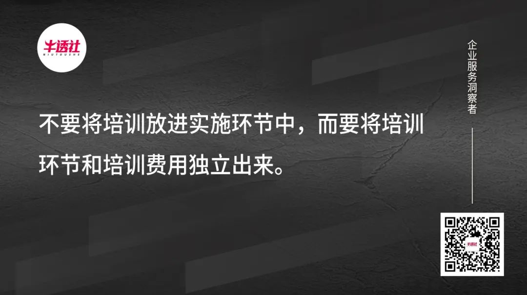 除此之外,企业可以化成本为收入,将培训认证做成一项业务,提供给培训认证生态合作伙伴。值得注意的是,不要将培训放进实施环节中,而要将培训环节和培训费用独立出来。