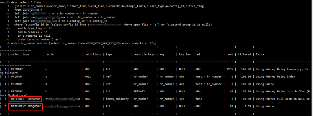 与之相对的执行方式是对外表的每一行都对子查询进行调用,其执行计划中的查询类型为“DEPENDENTSUBQUERY”。虽然物化子查询有利于提高SQL的执行效率,但如果使用不当,会引起意想不到的后果,比如数据库宕机,今天所讲的案例就是这样一个场景。
