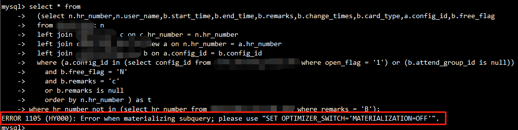 该sql语句执行成功,而且数据库也并没有宕机,看起来真的是物化子查询这个功能的原因。