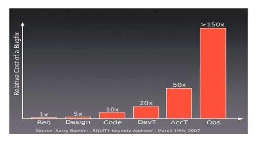 可,认真看过这张图的朋友,大概是笑不出来的。在各个阶段做测试,出现Bug后,修复所花的代价是天壤之别。