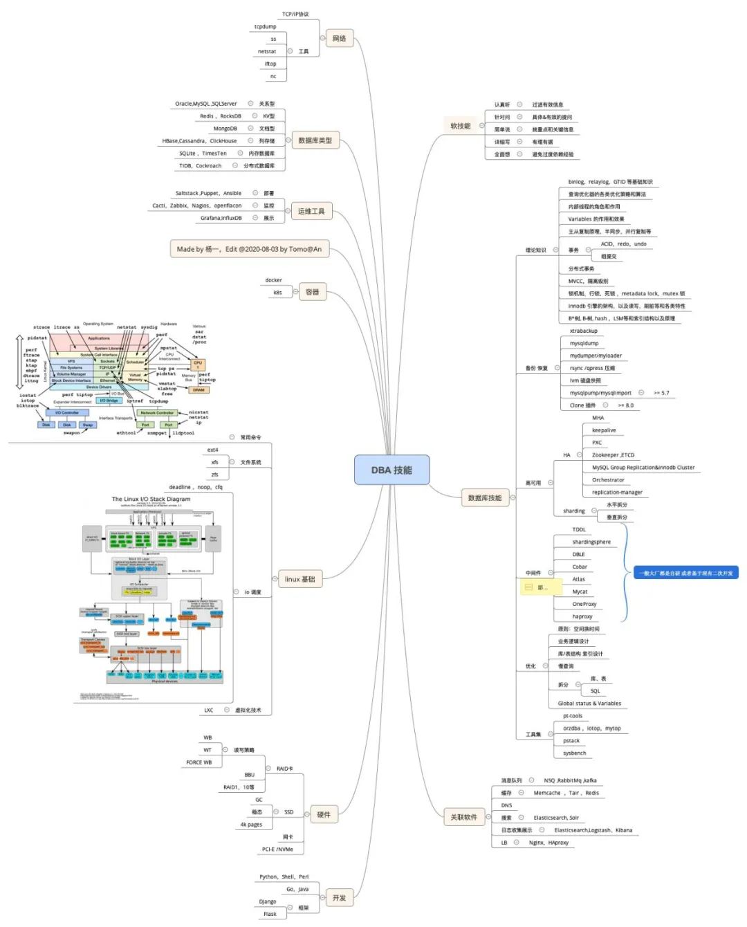 很早之前整理了一份DBA 技能图谱,最近有朋友问源文件,正好随着技术迭代,针对技能图谱做了补充。