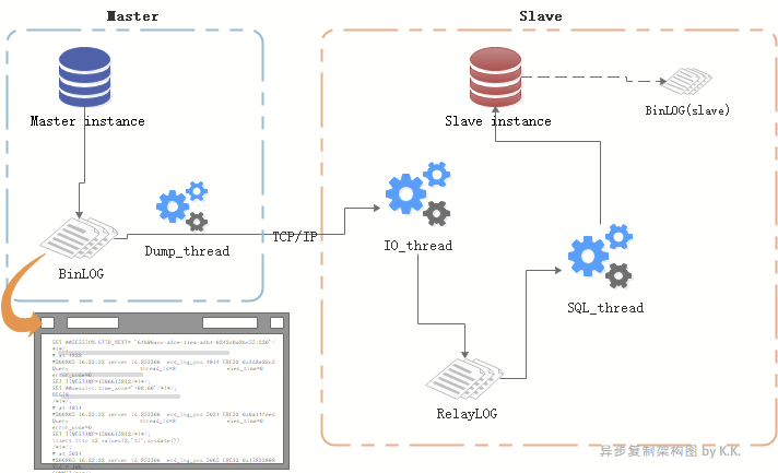 当slave的io_thread启动后,master便会为此分配一个dump_thread线程通过TCP协议与slave进行通信,负责读取主节点上的binlog信息并发送给从节点: