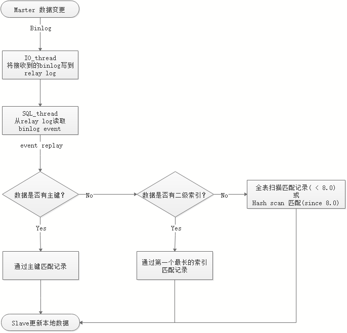 sql_thread重放过程中,如果有primary key,就通过primary key进行记录匹配;