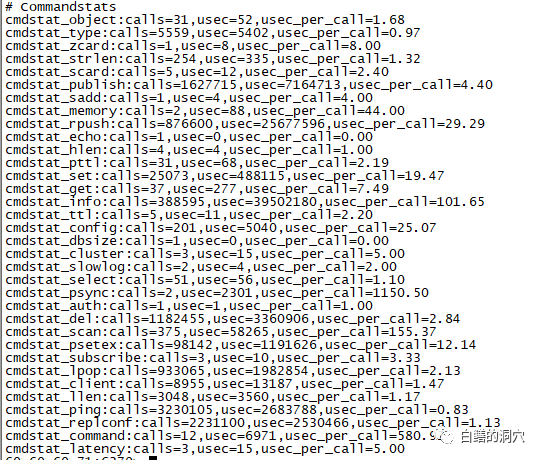 Redis的健康状态和应用关系较大,因此分析应用的情况也十分关键。使用commandstats获得应用的状态,并进行分析对于发现Redis运行状态的深层次问题十分关键。