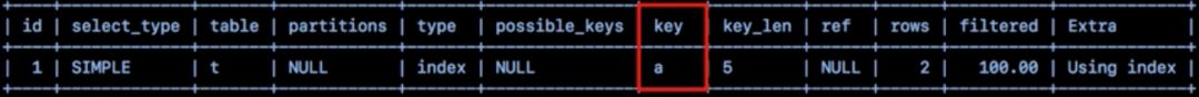 explain select * from t where id=2;的KEY结果是PRIMARY,就是我们常说的使用了主键索引