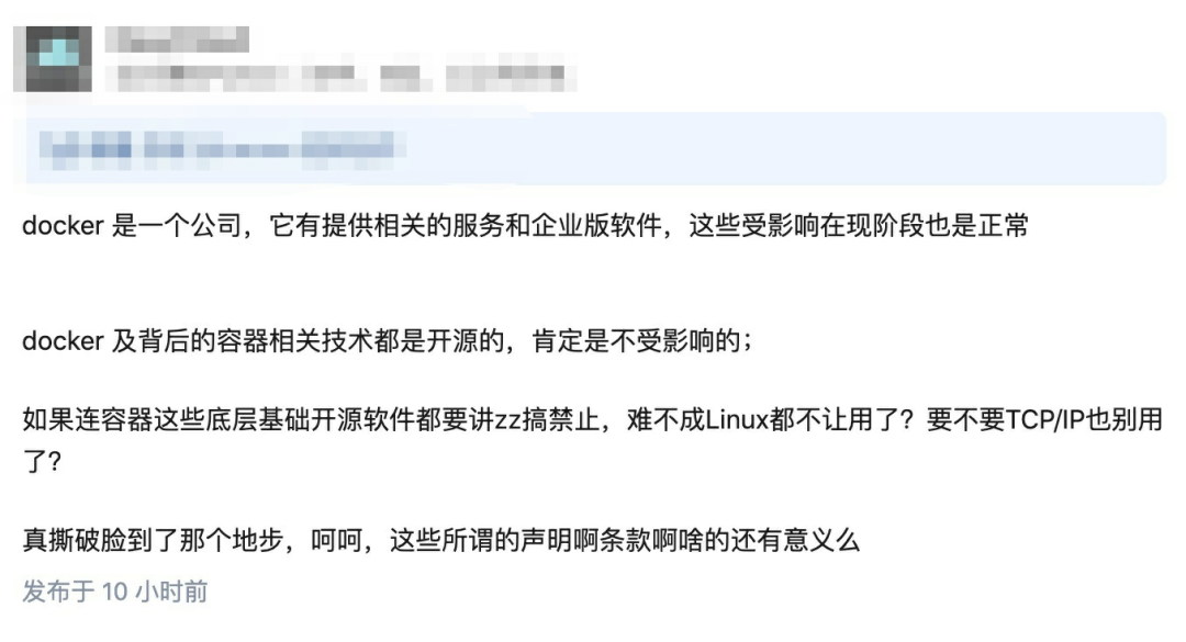 有网友表示,「Docker 及背后的容器相关技术都是开源的,肯定是不受影响的。」
