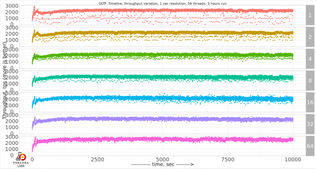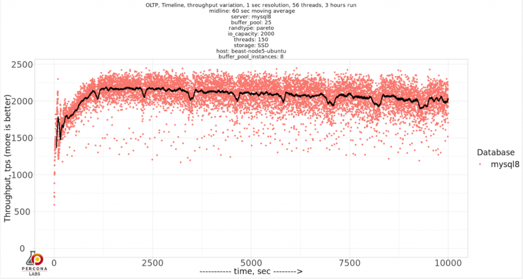 我将使用 sysbench oltp_read_write 基准测试显示为帕累托图。我将为大小为 100 GB 的数据库设置 innodb_buffer_pool_size = 25GB,因此在 buffer_pool 空间上会有竞争,这将是 IO 密集型情景情况。