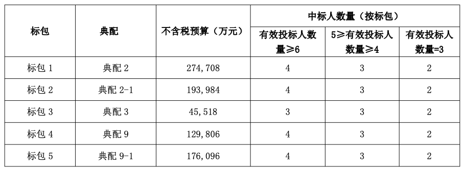 标包1、标包2、标包4、标包5:有效投标人数量≥6家时,前四名中标;5≥有效投标人数量≥4时,前三名中标;有效投标人数量=3时,前两名中标。