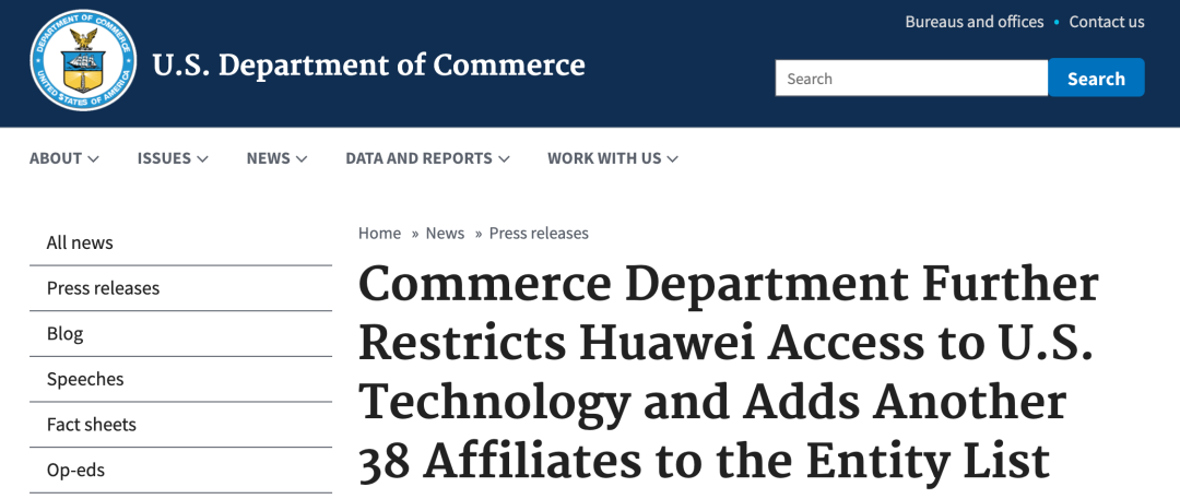 在美国国务院官网发布的声明中,蓬佩奥称,“国务院强烈支持商务部今天扩大其外国直接产品规则,这将阻止华为通过‘替代芯片生产’与‘使用从美国获得的工具生产芯片’来规避美国法律。”“实体清单”被认为是美国出口管制的“黑名单”,被列入的实体需要获得美商务部颁发的许可证,才能购买美国技术。美国企业可以申请向这些被列入名单的公司出售产品,但美国政府会抱着拒绝的态度审视此类申请。此外,美国工业和安全局(BIS)还在实体名单上另外增加了华为旗下的38家分公司,实体名单要求受《出口管理条例》(EAR)约束的所有产品都需要申请许可证,并修改了华为实体名单上的现有四项。BIS还规定凡是涉及受商务部出口控制管辖范围约束的产品的任何交易都需要申请许可证,比如华为(或实体名单上的其他实体)充当采购方、中间方或最终用户的情况下。这些措施立即生效,阻止华为企图规避美国出口管制条例,以获取使用美国技术开发或生产的电子部件。2020年5月,BIS修改了长期以来的外国产直接产品(FDP)规则,针对华为获取属于某些美国软件和技术直接产品的半导体这一行为。今天的修正案通过对以下交易进行控制来进一步完善FDP规则:该修正案进一步限制华为获取使用美国软件或技术开发或生产的外国产芯片,其程度与同类的美国芯片一样严格。美国商务部长Wilbur Ross表示:“华为及其外国分公司已加大了努力,以获得使用美国的软件和技术开发或生产的先进半导体。由于我们限制了其获取美国技术,华为及其分公司通过与第三方合作,以这种方式利用美国技术。这种多管齐下的行动表明了我们继续致力于阻止华为这么做的能力。”以下遍布21个国家或地区的38家新的华为分公司已被添加到实体名单上,BIS 称华为会以其他方式力求利用这些分公司来规避实体名单实施的限制。英文版:Huawei Cloud Computing Technology; Huawei Cloud Beijing; Huawei Cloud Dalian; Huawei Cloud Guangzhou; Huawei Cloud Guiyang; Huawei Cloud Hong Kong; Huawei Cloud Shanghai; Huawei Cloud Shenzhen; Huawei OpenLab Suzhou; Wulanchabu Huawei Cloud Computing Technology; Huawei Cloud Argentina; Huawei Cloud Brazil; Huawei Cloud Chile; Huawei OpenLab Cairo; Huawei Cloud France; Huawei OpenLab Paris; Huawei Cloud Berlin; Huawei OpenLab Munich; Huawei Technologies Dusseldorf GmbH; Huawei OpenLab Delhi; Toga Networks; Huawei Cloud Mexico; Huawei OpenLab Mexico City; Huawei Technologies Morocco; Huawei Cloud Netherlands; Huawei Cloud Peru; Huawei Cloud Russia; Huawei OpenLab Moscow; Huawei Cloud Singapore; Huawei OpenLab Singapore; Huawei Cloud South Africa; Huawei OpenLab Johannesburg; Huawei Cloud Switzerland; Huawei Cloud Thailand; Huawei OpenLab Bangkok; Huawei OpenLab Istanbul; Huawei OpenLab Dubai; and Huawei Technologies R&D UK中文版:华为云计算技术公司、华为云北京公司、华为云大连公司、华为云广州公司、华为云贵阳公司、华为云香港公司、华为云上海公司、华为云深圳公司、华为OpenLab苏州、乌兰察布华为云计算技术公司、华为云阿根廷公司、华为云巴西公司、华为云智利公司、华为OpenLab开罗、华为云法国公司、华为OpenLab巴黎、华为云柏林公司、华为OpenLab慕尼黑、华为技术杜塞尔多夫有限公司、华为OpenLab德里、Toga Networks、华为云墨西哥公司、华为OpenLab墨西哥城、华为技术摩洛哥公司、华为云荷兰公司、华为云秘鲁公司、华为云俄罗斯公司、华为OpenLab莫斯科、华为云新加坡公司、华为OpenLab新加坡、华为云南非公司、华为OpenLab约翰内斯堡、华为云瑞士公司、华为云泰国公司、华为OpenLab曼谷、华为OpenLab伊斯坦布尔、华为OpenLab迪拜和华为技术研发(英国)中心。BIS表示:《临时通用许可证》(TGL)现在已过期。该规则通过对实体名单上的华为实体进行有限的永久授权,进一步保护了美国的国家安全和外交政策利益。这种有限的授权其目的完全是为了提供日常的安全研究,这种安全研究对于维持现有和目前“完全可操作的网络”和设备的完整性和可靠性至关重要。在一条并行的规则中,BIS修改了实体名单,当实体名单上的一方充当EAR交易的采购方、中间收货人、最终收货人或最终用户时,需要申请许可证。当实体名单上的任何华为实体是交易的当事方(比如充当采购方、中间收货人、最终收货人或最终用户)时,这与FDP修订版中施加的其他限制相一致。