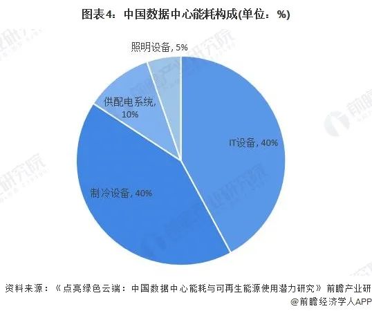 不过,近年来的数据中心的建设发展也逐渐引了社会对其环境保护与资源消耗的担忧。由于数据中心的配套建设涉及众多设备,包含了电力设备、空调设备、网络设备等,而能源的消耗包括了IT设备、制冷设备、供配电系统和照明设备,光是IT设备和制冷设备就占到了能源消耗的80%,因此对电力的消耗巨大。