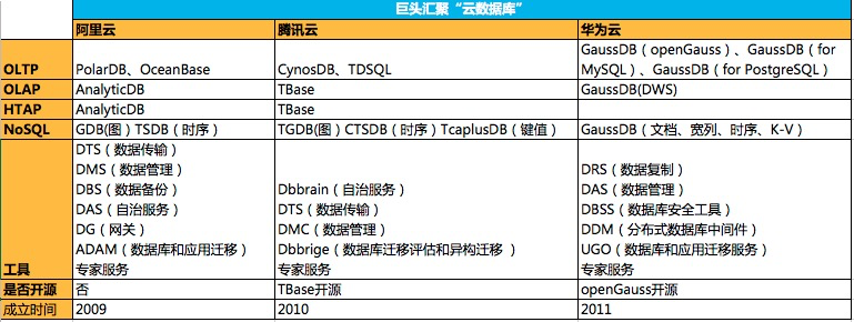 华为云今年上半年最大的动作,是将GaussDB并入,并对自研数据库进行品牌调整,在OLTP方面,华为云有GaussDB(openGauss)(基于openGauss内核,增强分布式能力的商业版本)、GaussDB(for MySQL)(基于华为最新一代DFV分布式存储,采用计算存储分离架构)、GaussDB(for PostgreSQL)(基于华为最新一代DFV分布式存储,采用计算存储分离架构)。其中openGauss已经开源,在OLAP方面,有GaussDB(DWS)。