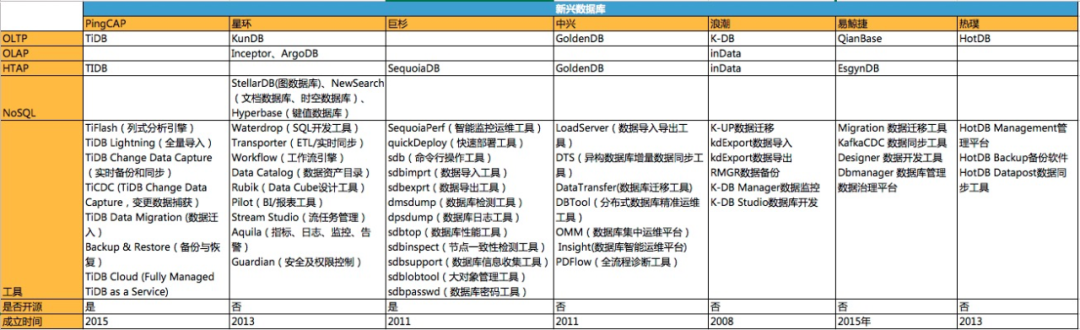 这一类厂商既有专注于数据库领域的初创公司,也有通信、服务器方面的巨头跨界,但其企业成立时间或推出数据库产品时间,普遍在2011年之后。新兴数据库公司不断涌现,以及其他领域公司向数据库跨界情况的增多,使国内数据库市场更加繁荣和活跃。