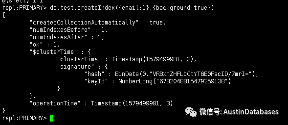 作为复制集,添加索引的的方式也是以命令的方式推送到从节点,但如果是