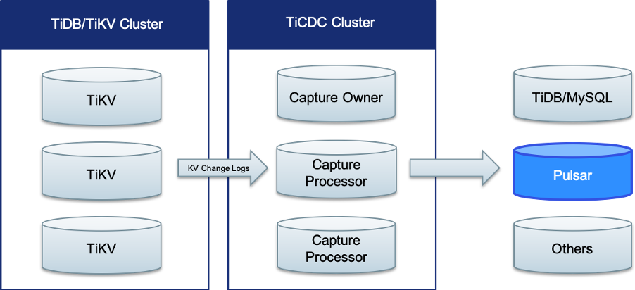 在 TiDB v4.0.4 版本中,TiCDC 开放数据协议(Open Protocol )可以与 Pulsar 实现无缝对接,提供实时、高吞吐、稳定的数据输出,满足用户在大数据场景中对各类数据的应用与分析需求,广泛适用于日志收集、监控数据聚合、流式数据处理、在线和离线分析等场景。
