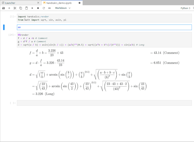 装上handcalcs插件后,Python就从一个无情的计算器,升级成了华丽的公式生成器。