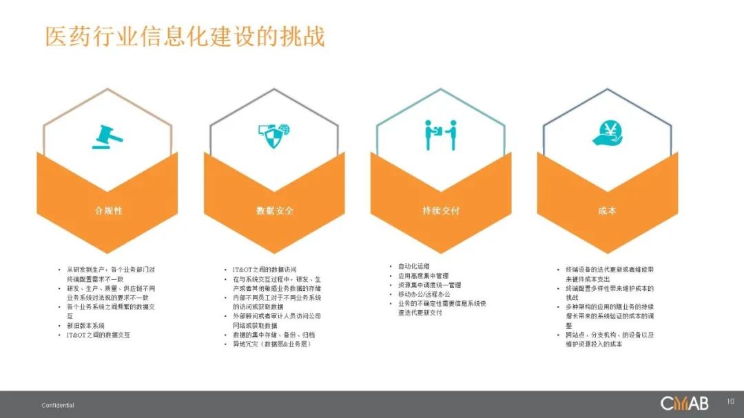 合规性:首先是合规性的验证,从研发到生产的各个业务部门对终端管理的需求是不一样的。例如在研发阶段,对于时效性要求较高,这意味着终端会呈现出多样性。终端在开发或者研究时,有大量的运算过程,这些数据往往会散落在各个终端的电脑上。研发、生产、质量对于每个业务系统的法规要求也是不一致的,研发环节不需要满足的要求,生产环节可能需要有相应的要求。而且在研发生产的过程中,很多的方法、实验数据要从研发转移到生产,各个业务系统之间一定会频繁的产生数据交互。除此之外还会出现新旧系统更新换代、新旧系统之间的更新等等,都会带来很大的合规性的问题。