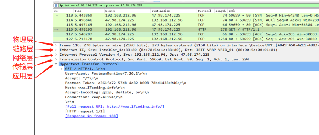 本文中所有的包都是通过 postman 发送请求,然后用 wireShark 来抓的!如果对这两款软件还不了解的盆友可以先去了解下哈,这里不过多说明。