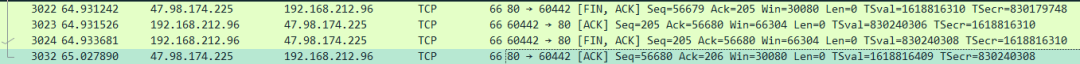 如果想发出请求后立马能抓到四次挥手的数据包,可以设置 HTTP 的头部 Connection:close。