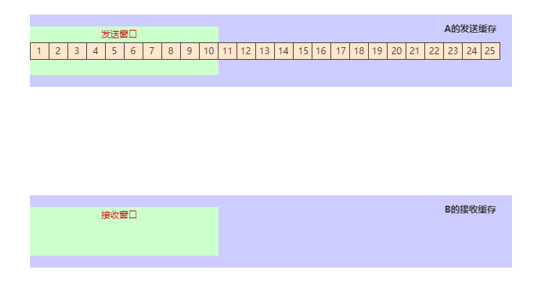 在没有收到 B 的确认之前,A 的窗口不会滑动,也就是说最多能发 10 个字节的数据。