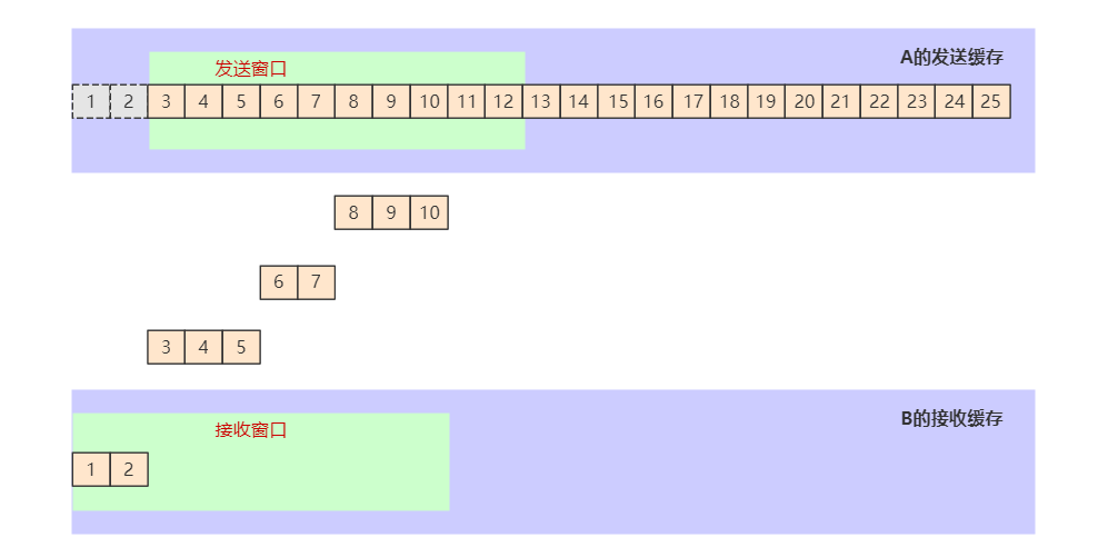 也就是说假如发送方发送了数据包 1、2、3、4,接收方只需要回复对数据包 4 的确认,那表示 1234 数据包都已经收到了,就可以进行第五个数据包的发送了!