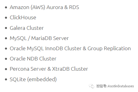 实际上proxysql 可以算是一个支持广泛的中间件,下面是其支持的产品线