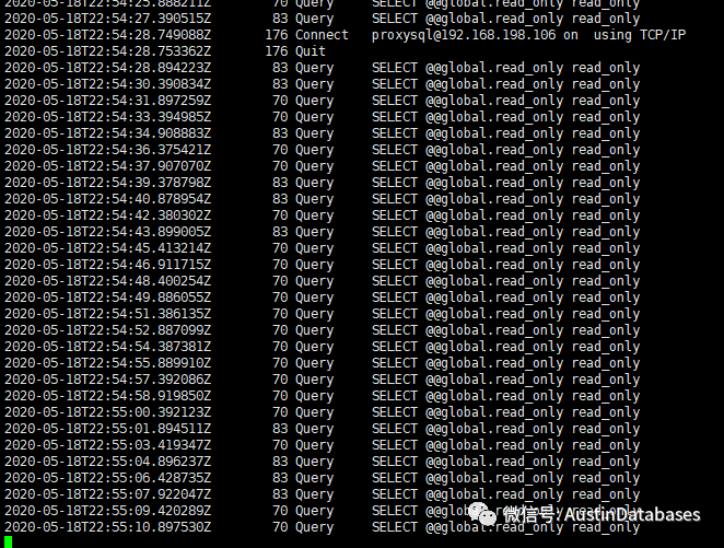 结果如果是 101 和上图情况一致,则说明proxysql 解决了同时出现两个read_only = off 的情况