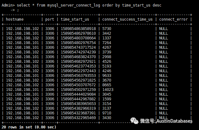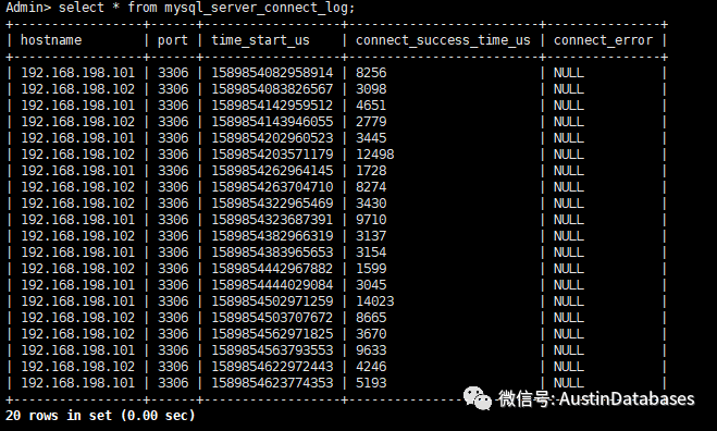 1 connect 连接的后端的成功和失败的,信息将存储在 mysql_server_connect_log 中