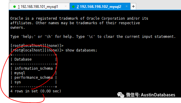 我们以下图作为一个例证,目前101的read_only 设置为ON,而102 的 read_only 设置OFF ,也就是目前有两台MYSQL 主 102 从 101
