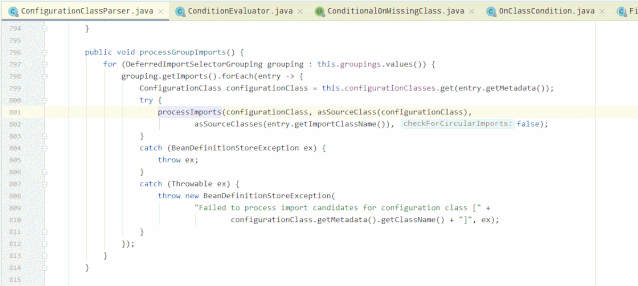 1. ImportSelector的解析在ConfigurationClassParser#processImports中处理