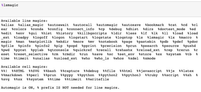 %matplotlib inline vs %matplotlib notebook%run 函数在 notebook 内运行 python 脚本。%WriteFile 将单元格的内容写入文件。在这里,代码将被写入一个名为 foo 的文件,并保存在当前目录中。