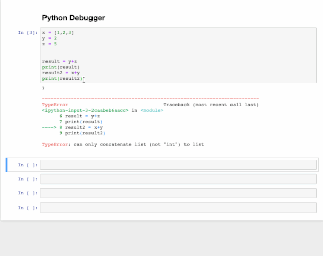 interactive debugger 也是一个神奇的函数,但我已经为它提供了自己的一个类别。如果在运行代码单元时遇到异常,请在新行中键入%debug 并运行它。这将打开一个交互式调试环境,将您带到发生异常的位置。您还可以检查程序中分配的变量值,并在此处执行操作。要退出调试器,请单击 q。如果您想为数据结构生成美观的表示,pprint 是你想要的模块,它在打印字典或 JSON 数据时特别有用。让我们来看一个使用 print 和 pprint 显示输出的示例。