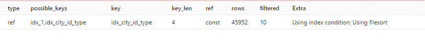 请忽略idx_1和idx_city_id_type两个索引的重复,这都是历史遗留问题了。