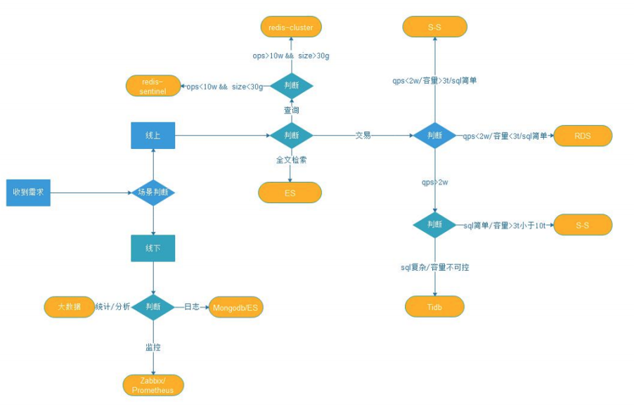 首先是容量上,比如说我的容量小于 3T ,QPS 小于 20000,大表小于 10 个,这种场景就会使用 RDS;