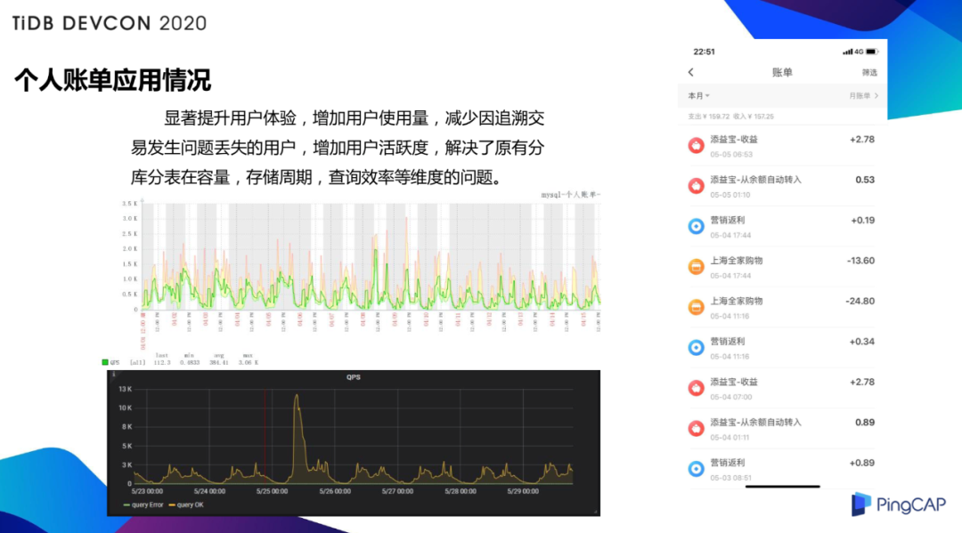 显著提升了用户体验,增加用户使用量,减少因追溯交易发生问题丢失的用户,增加了用户活跃度,解决了原有分库分表在容量、存储周期、查询效率等纬度的问题。
