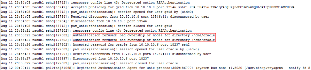 后面和哥们沟通发现/home/oracle是手动创建的,这坑造的......从这个问题我们可以看到互信配置不仅仅只跟.ssh权限有关系,而且和用户主目录权限也有关系。