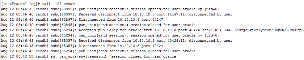 看到这笔者决定把所有节点的.ssh目录全删掉,手动重新配置试试,结果还是一样的令人失望,还是需要输入密码。既然ssh不行,查看/var/log/secure安全日志是否有发现。