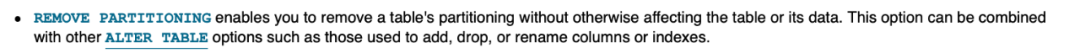 remove partitioning这个语法真的第一次见,神奇。。简单测了一下,不管表中有没有数据都是可以remove的。