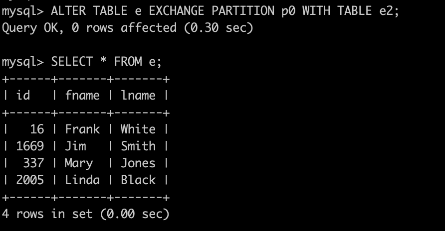 以上就是简单的交换分区的方法,MySQL还提供了自分区的交换功能,我就不再细说了,有需要可以去官方文档上看下语法。