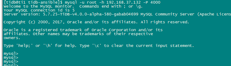 ansible-playbook -ihosts.ini deploy_ntp.yml -u tidb -b