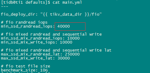 Tidb要求SSD磁盘,虚拟机安装的话达不到安装要求,可修改/home/tidb/tidb-ansible/roles/machine_benchmark/defaults/main.yml文件,如IOPS修改小一些,可检测通过
